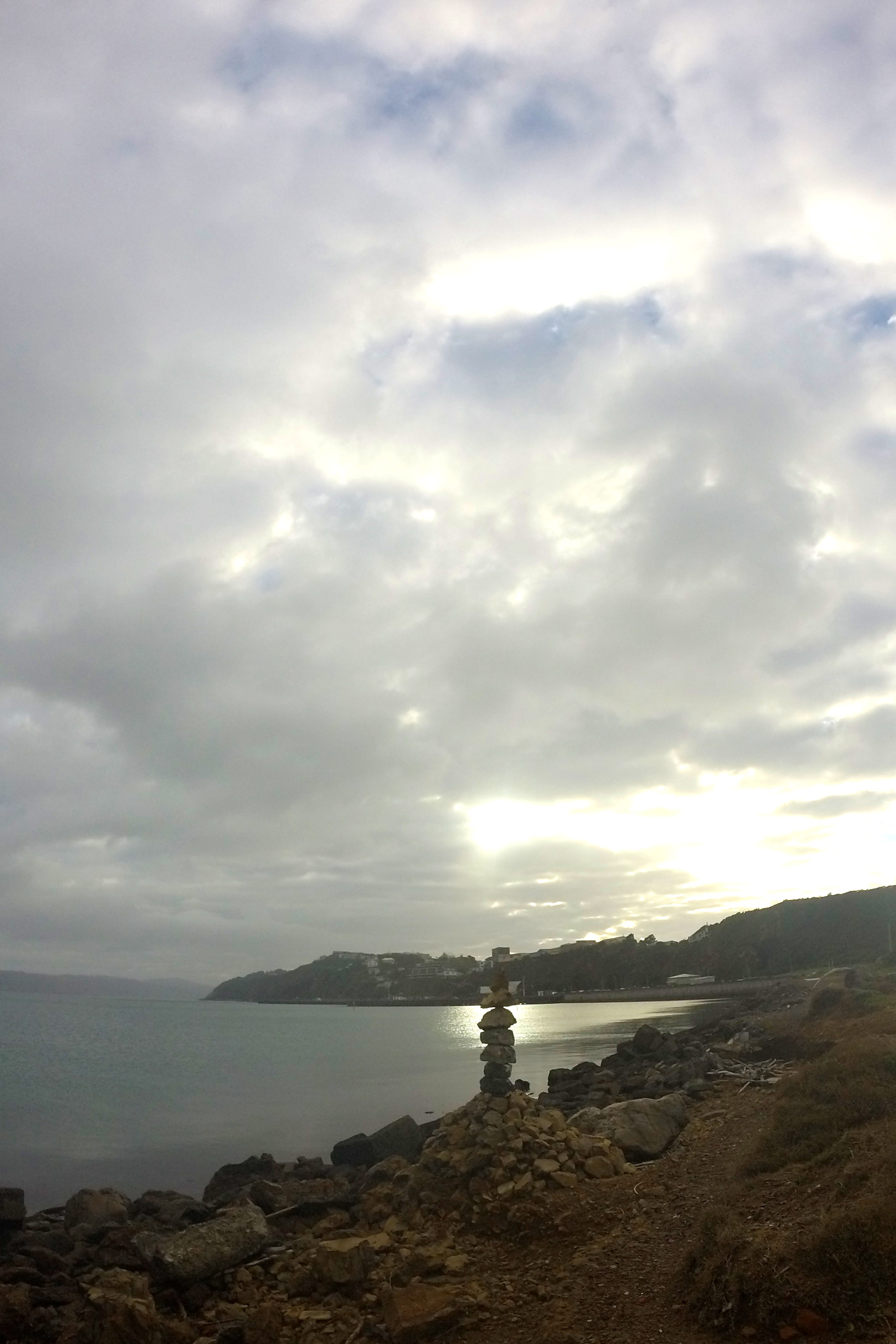 The rarest is a fragile high, so elevated and bright that the dark outline of the Tararuas and the bottleneck of Cook Strait become anchors for a gently inflating sky. On these breathless days blue prevails. Your eyes are invariably drawn to red hulled tankers and yellow gorse. Other senses are also heightened – aromatic seaweed permeates the ozone; hushing waves pull back through polished shingle. This hypnotic ferment amplifies sounds within the Harbour’s throat. Gulls screech on unseen shores. Ferries mow up and down shipping lanes. Yet, the euphoria is short-lived. As if blown from the belly of a mythical bird, cirrus clouds soon signal change on its way.