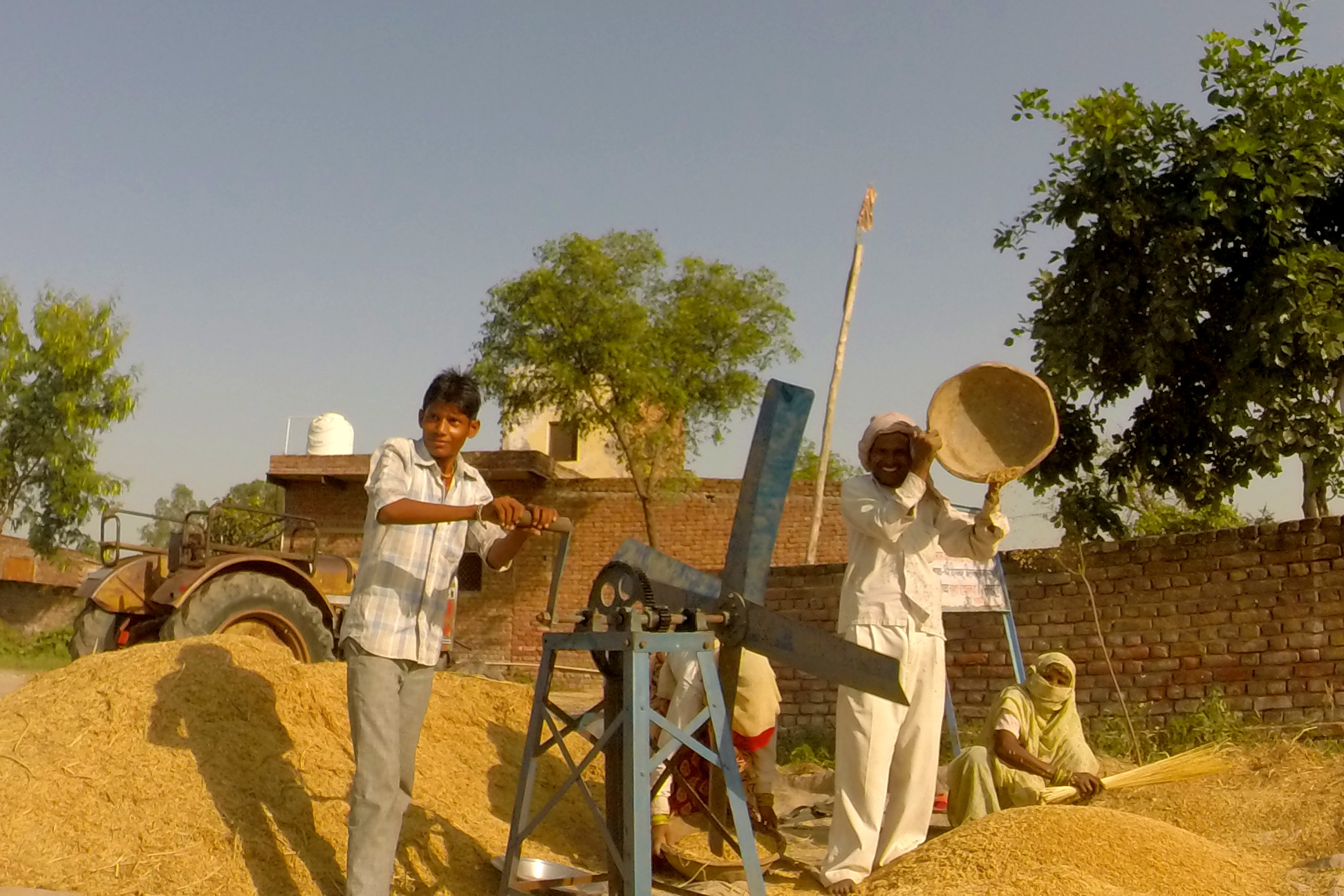 I have just completed making a path from the main part of the ashram to the outhouse bathroom using cracked marble and local stone. I brought over a little spirit-level from New Zealand, which kept the integrity of the path intact, and used underlying clay to make mortar, wedging chopped hay to bind the grout. All the gardening equipment purchased from our Yoga Challenge donations – posted by the lovely Terese – has been well used. Guruji is enamored with the hand saw which cuts through fresh wood like knife through bread.